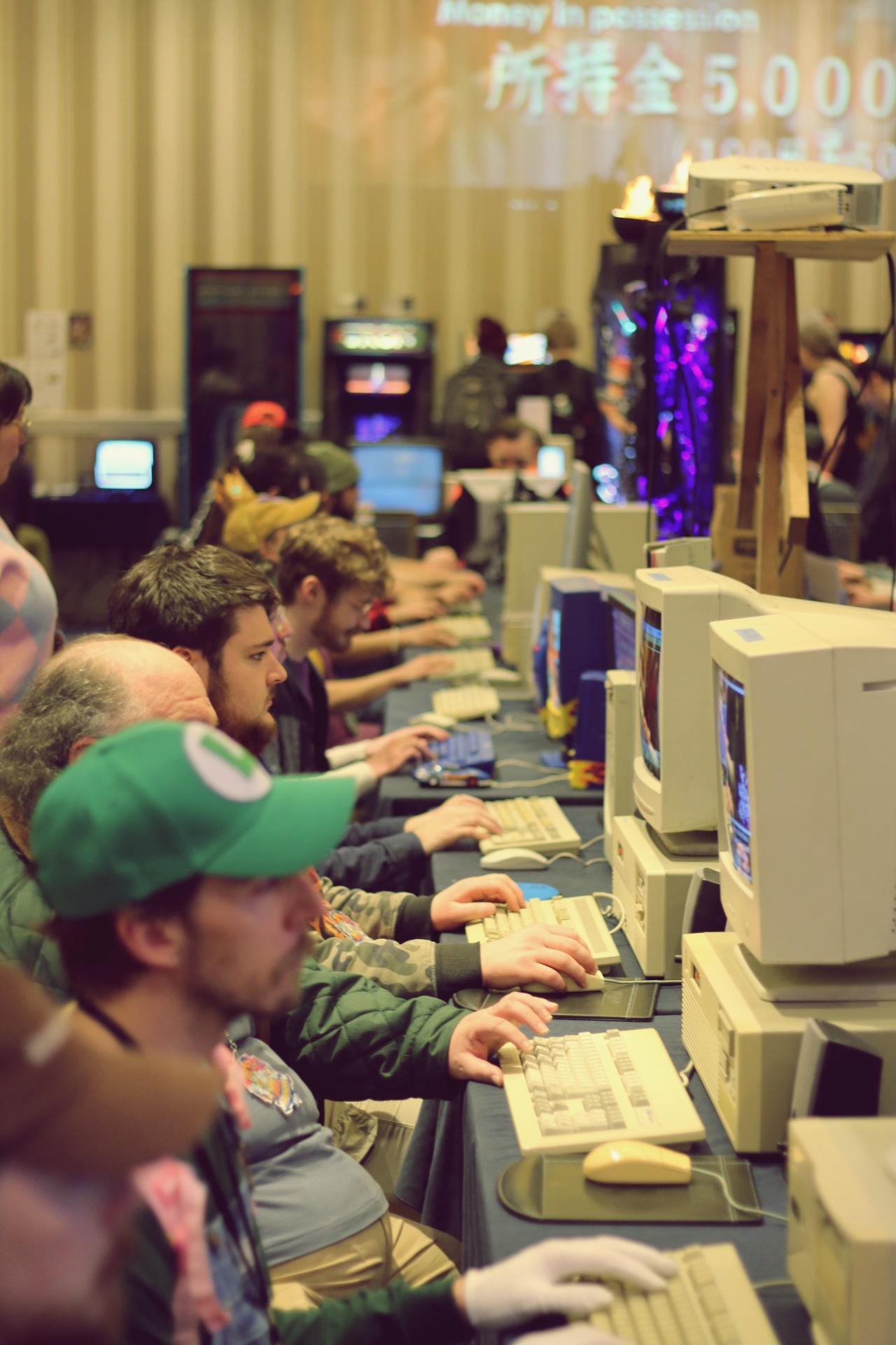 There are a variety of operational classic computer systems on an assortment of architectures ranging from the Intel 8080, MOS 6510, Motorola 68k, PowerPC, and Zilog 80 to choose from. Plenty of games to play dating back to the late 70s through early 2000s with the original hardware they were designed to run on, all configured and ready to go. Just to name a few we have loaded there’s Commander Keen, Doom, Duke Nukem, Lemmings, Number munchers, The Oregon Trail, The Sims, Unreal, and Wheel of Fortune. A dedicated local area network (LAN) for multiplayer games is also available with dedicated rack servers hosting on the side. Some fine examples of computers that have been at previous events include: Amiga 1000, Apple II, Atari 800, Commodore 64, IBM PC Junior, Kaypro 2, Mattel Aquarius, Tandy Color Computer, TI-99/4A, and Timex Sinclair 2068.
